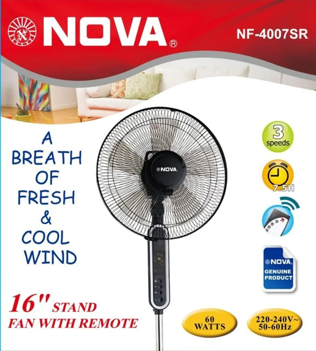بررسی تخصصینوع محصولپنکه ایستادهمدلNF-4007SRتوان مصرفی60 واتتعداد پره5 عددجنس پرههاپلاستیکیریموت کنترلداردتنظیم سرعت3 حالت (کم، متوسط، زیاد)سایز پره16 اینچزمانسنج (تایمر)7.5 ساعتقابلیت تنظیم ارتفاعدارد