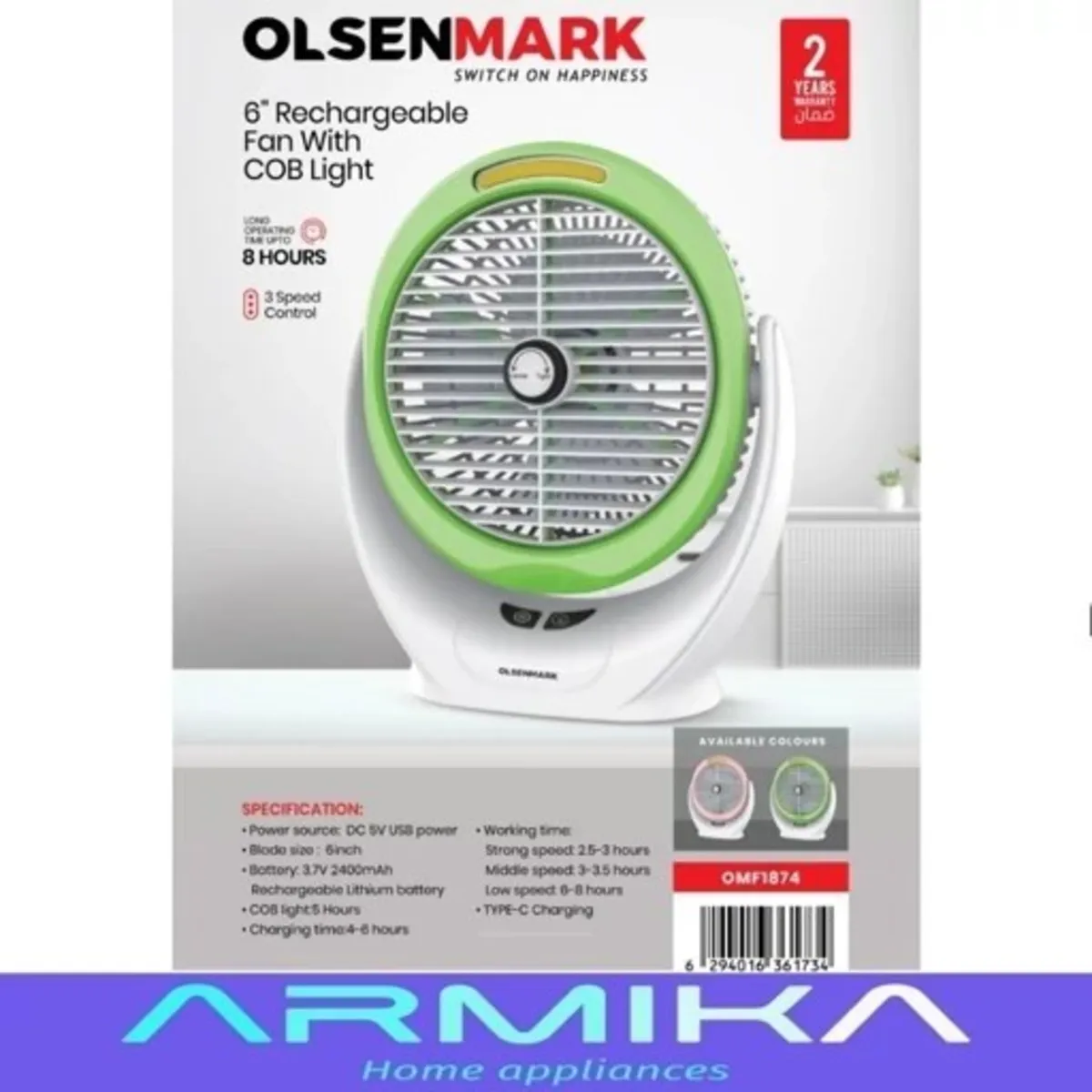 پنکه رومیزی شارژی 6 اینچ اولسن مارک OLSEN MARK مدل OMF1874