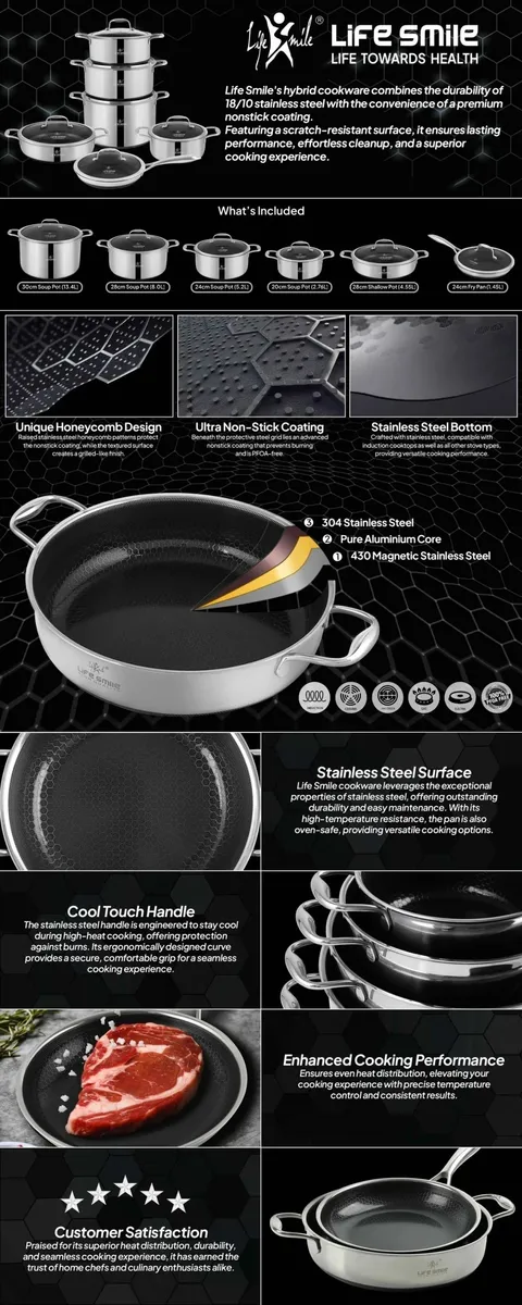 سرویس قابلمه استیل 10 پارچه کف لیزری لایف اسمایل(اصل)مدلp18-10